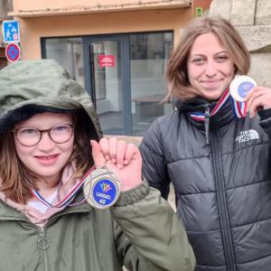 Lili Fernandez et Lou Jaffuel brandissant fièrement leur médaille.