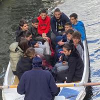 Puis ce fut la fête dans le car, les heures de repas décalées à la suite des relais des chauffeurs, et enfin le ferry à Calais, appréhension, repas, jeux, promenade sur le pont, lever de soleil sur la Manche. Le mardi, première visite à Canterbury, promenade en barque, découverte du shopping en anglais, l’arrivée dans les familles le soir.