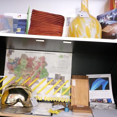 La citée du Design abrite aussi une Matériothèque, véritable catalogue vivant de toutes les matières existants, environ 3500 échantillons et objets, toujours complétés par des matériaux innovants.