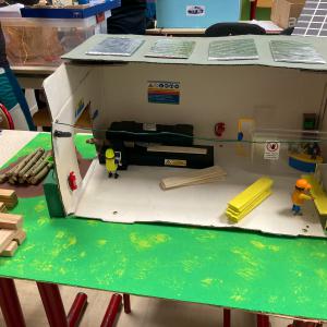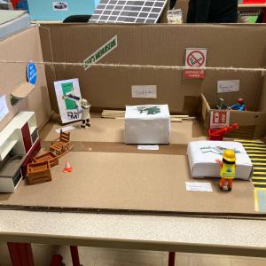 Mais la maquette devait être réalisée selon cinq critères d’évaluation : Usine modulable (nous devions voir ce qui se passe dans l’usine ou dans la partie technique), sécurité (éléments mis en place comme des panneaux, des alarmes,..), qualité du travail, originalité et recyclage (à partir de matériaux recyclés).