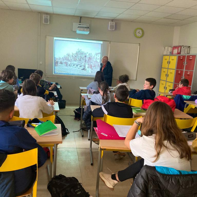 Ce jeudi 25 avril 2024, M. Chaize est venu à l’ensemble Saint Pierre - Saint Paul afin de parler de la Seconde Guerre mondiale et de ses conséquences à certaines classes (collège, lycée général et Lycée Professionnel). M. Chaize, ancien professeur d’Histoire-Géographie à l’ensemble Saint Pierre - Saint Paul et membre des Amis du Patrimoine de Langogne avait réalisé un travail de recherche et de documentation aussi bien au niveau national qu’au niveau départemental et surtout local (à Langogne) sur cette période.