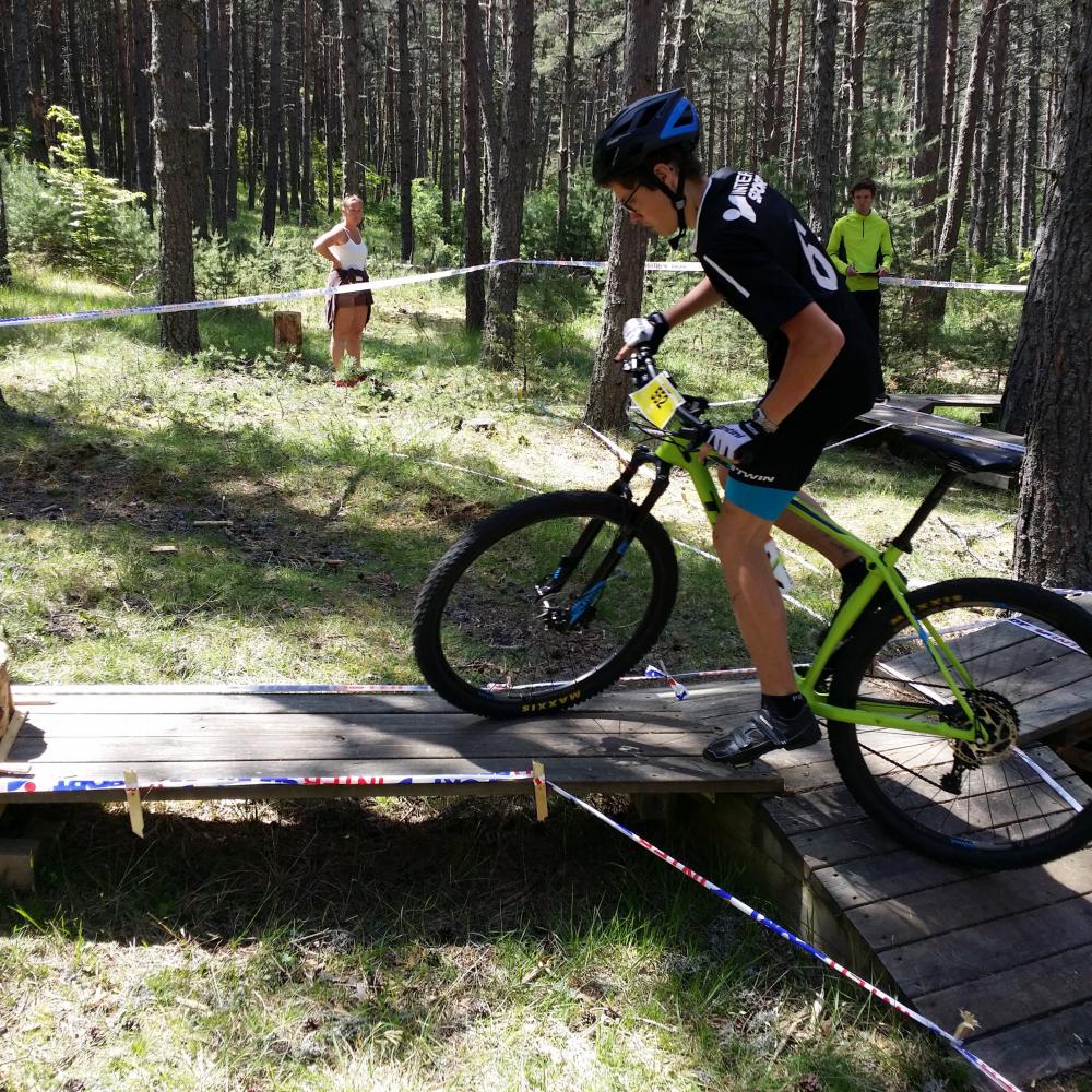 Au programme du Mardi, quatre épreuves : une montée infernale où les concurrents doivent atteindre le plus haut pallier d’une montée de 70 m de long afin de marquer un maximum de points. Jean Baptiste a réussi à aller au bout de celle-ci, alors que Romain a malheureusement coincé sur une des difficultés de la montée. Les deux langonais ont ensuite enchaîné par le trial, parcours d’obstacles à réaliser sans poser le pied et sans toucher les banderoles posées au sol. Deux parcours comprenant chacun six zones de difficultés différentes s’offraient au VTTistes. Cette fois c’est Romain qui se montrait un peu plus à l’aise alors que Jean Baptiste ne déméritait pas. Vient ensuite l’épreuve de la descente où les deux langonais ont donné le meilleur d’eux-même pour arriver sur la ligne en un minimum de temps. Pour clôturer cette journée, les élèves participaient à un cross country. Quatre boucles a effectuer le plus rapidement possible dans une course avec l’ensemble des concurrents de la catégorie. Dans cette course cadets-juniors, les six premiers se sont rapidement détachés pour se livrer une belle bataille pendant toute la course. Nos langonais ne baissent pas les bras et finissent la course dans des temps plus qu’honorables. Au final, les points marqués par chaque concurrents sont additionnés pour obtenir le classement final : au maximum 30 points pour la montée, 50 pour la descente, 80 pour le trial et 200 pour le cross. Jean Baptiste termine à la 21ème position et Romain à la 31ème sur une soixantaine de participants. Après un repas partagé avec l’ensemble des concurrents et la remise des prix et des maillots de champions, retour à Langogne pour un repos bien mérité avant l’épreuve du mercredi.