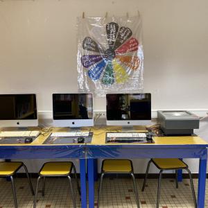 Nouveautés au CDI : Pour créer un environnement propice à la lecture les meubles du CDI ont fait peau neuve ! Des travaux de peinture ont été réalisés par Mireille avec l’aide de Coralie pour la signalétique. Cette initiative vise non seulement à embellir l’espace, mais aussi à inciter les élèves à découvrir le plaisir de lire. Les teintes choisies sont symboliques : le bleu évoque la sérénité et la réflexion, le rouge l’énergie et la passion, tandis que le jaune apporte une note de joie et de dynamisme. Ensemble, ces couleurs forment un cadre accueillant et inspirant, idéal pour plonger dans l’univers des livres.