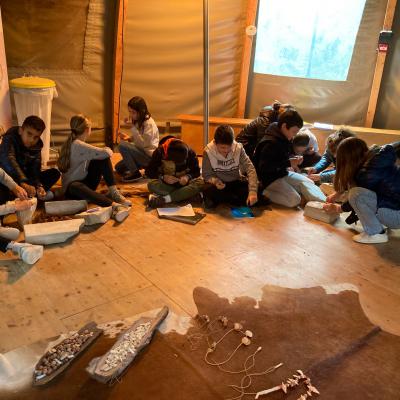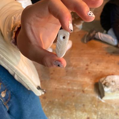 Les élèves ont pu faire un atelier de réalisation d’un collier avec les techniques de la préhistoire et le ramener chez eux.
