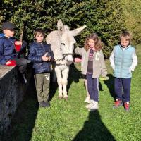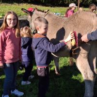 Après un pique-nique chaleureux avec les parents et les âniers, les enfants ont pris soin des ânes et les ont décorés pour une parade féerique au crépuscule.
