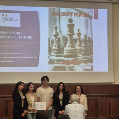 Les élèves de 2nde B du Lycée Saint Pierre - Saint Paul reçoivent un prix spécial pour leur affiche de prévention du harcèlement sexiste et sexuel.