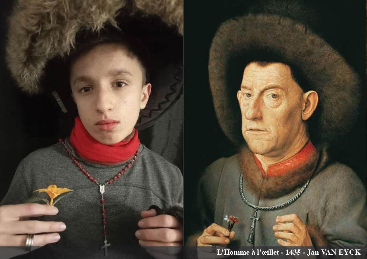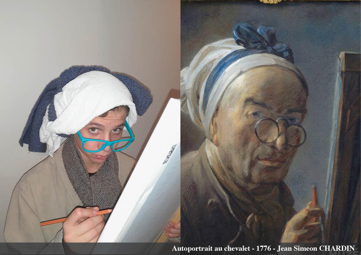 En Arts plastiques, les élèves de 3e ont relevé un défi inspiré du Getty Museum : reproduire un tableau célèbre à la maison en n’utilisant que des objets du quotidien. Avec au moins trois éléments trouvés chez eux ils ont réinventé des œuvres en choisissant de se plonger dans des atmosphères différentes : couleurs, cadrage, composition, gestes, drapés… chacun a travaillé comme un véritable metteur en scène pour transformer vêtements, accessoires ou lampes en véritables outils artistiques. Le résultat ? Une galerie créative, drôle et surprenante, qui montre à quel point l’art peut naître partout — même dans un salon ou une chambre !