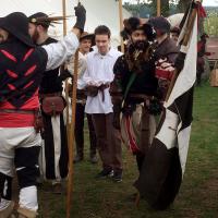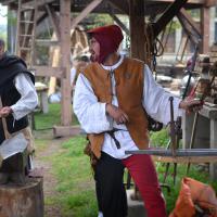 Le dimanche se déroulait comme le samedi. Les « Mercenaires » et les « Bâtisseurs » descendaient en ville pour proposer des démonstrations de combat et de danse. Au passage ils offraient quelques verres d'un hypocras fait maison aux spectateurs. L 'après-midi s 'annonçait sonore avec une présentation des arquebuses et quelques tirs bruyants. Dès le soir les compagnies démontaient le camp, les tentes et les ateliers même si certains dormaient une dernière nuit sur place pour surveiller les derniers vestiges du camp.