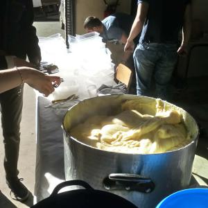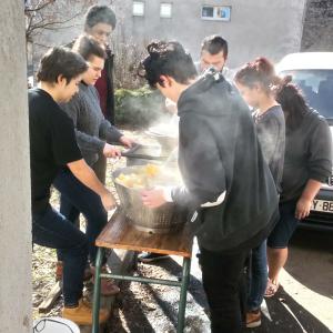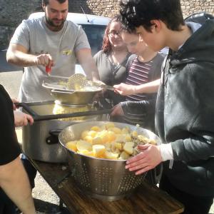 Deux fois par an, les étudiants de deuxième année (BTS DG, BTS DP et BTS MV) participent à la préparation d'aligot et de pain cuit au four à bois, sous les yeux experts de quelques enseignants. Ainsi le vendredi 22 février, de nombreuses parts d'aligot et de nombreux pains étaient préparés.