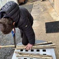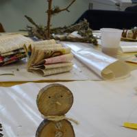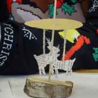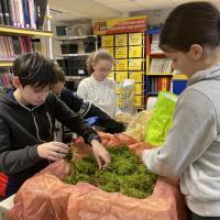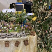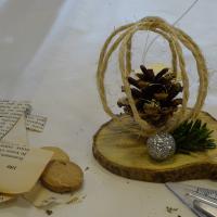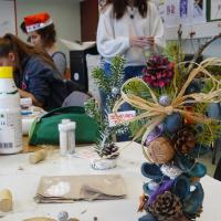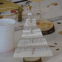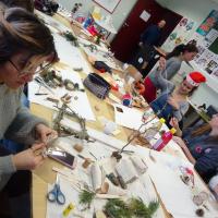 Petit atelier pour préparer le sapin et la crêche de Noël réalisés à partir de matériaux de récupération.