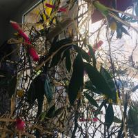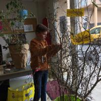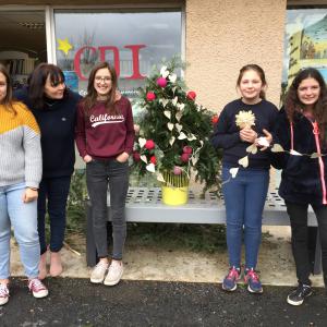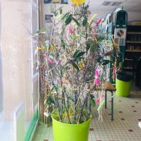 Pour Pâques, Mireille confectionne l’Arbre de vie, particulièrement beau avec ses couleurs rose et jaune. Chaque élève du CDI a pu déposer une intention de prière sur un petit papier, pour l’enrouler et le déposer sur l’Arbre. Les prières montent au Ciel ; et l’Arbre, par sa présence, réchauffe nos cœurs en nous ancrant dans l’espérance de la Vie éternelle.