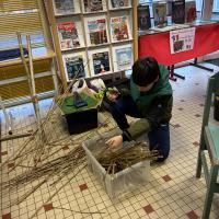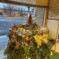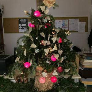 La magie de Noël a pris vie au CDI grâce aux élèves du club «Lecture-Culture». Ensemble, ils ont confectionné un sapin unique, réalisé à partir de branches délicatement coupées par Anne Guichardiere et ornées de décorations faites avec des matériaux de récupération. Chaque élève a mis sa petite touche personnelle, illuminant ainsi ce projet collectif de joie et d’inventivité.