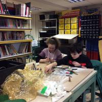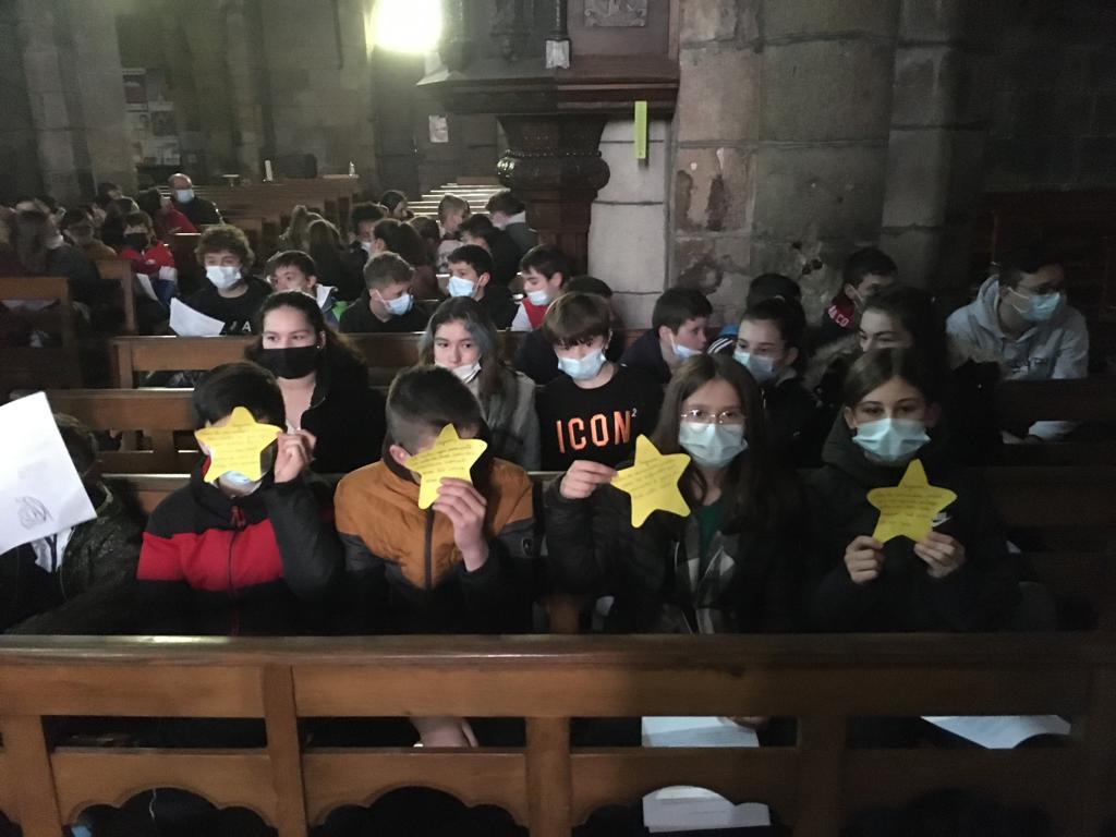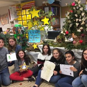Au CDI, Mireille n’est pas seule à la tâche ; les collégiens aident à confectionner de belles étoiles qui guident les Mages ; on peut les voir arborer leur chef-d’œuvre lors de la messe de Noël.