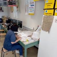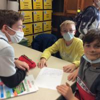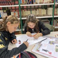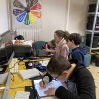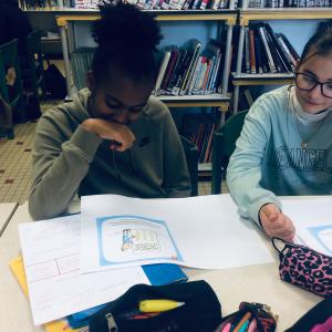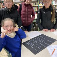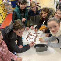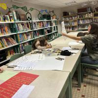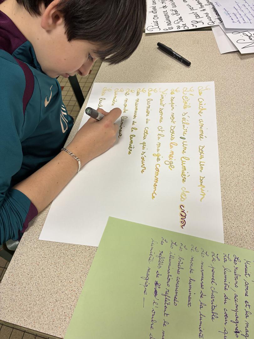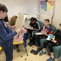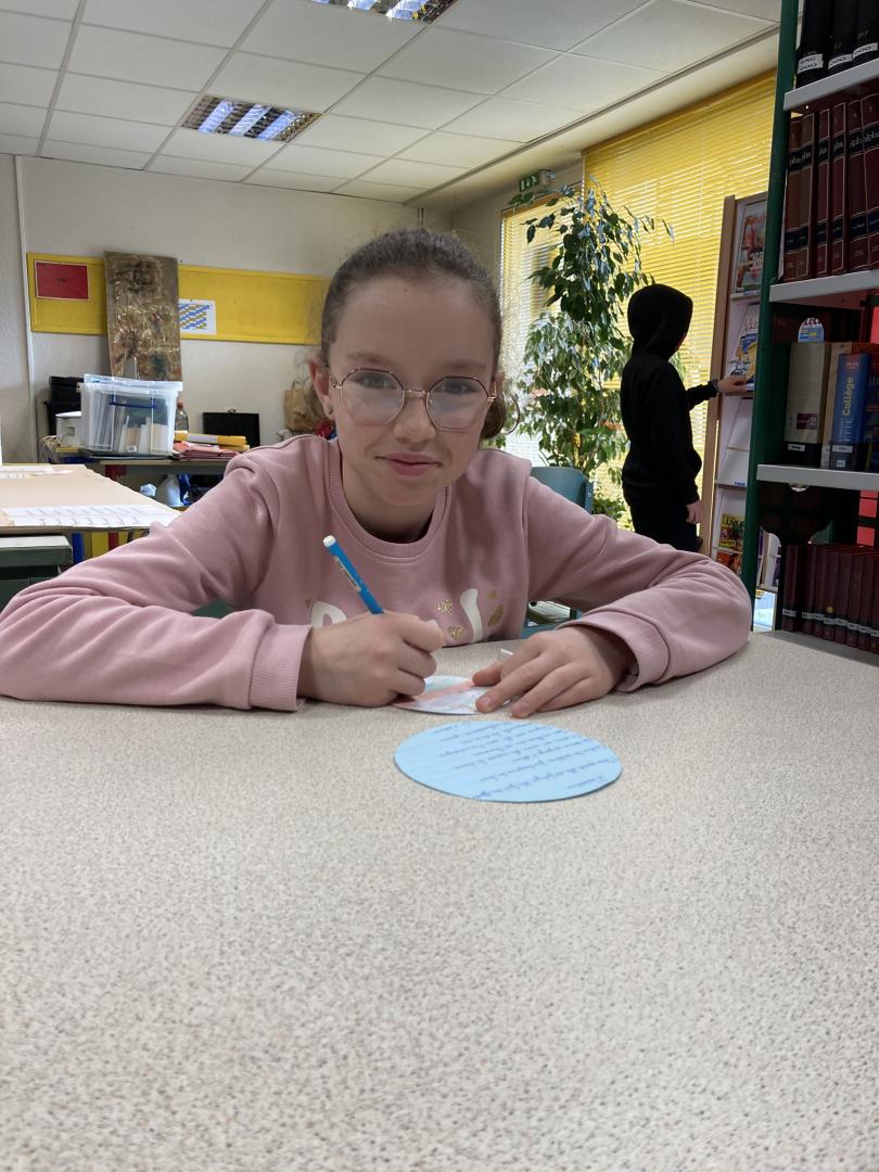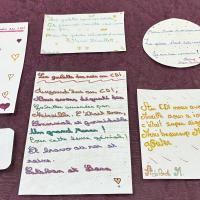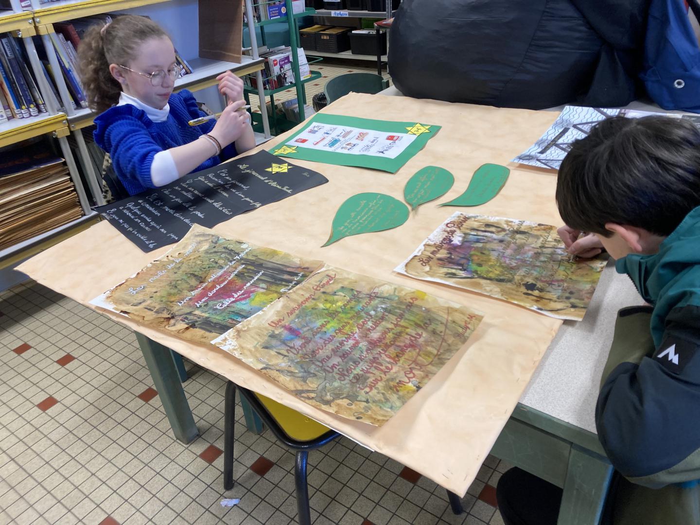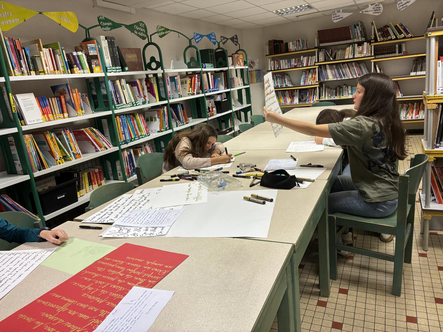 Quatre ateliers étaient proposés, parmi lesquels une séance de création poétique avec Madame L’hermet documentaliste et Madame D'Agostino, professeur de français. L'occasion d'un travail commun entre les élèves de sixième et les plus jeunes, qui n'ont pas manqué de se prêter au jeu du poème. Le dessein était de composer des tercets à partir de mots attribués au hasard.