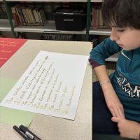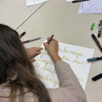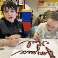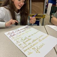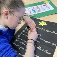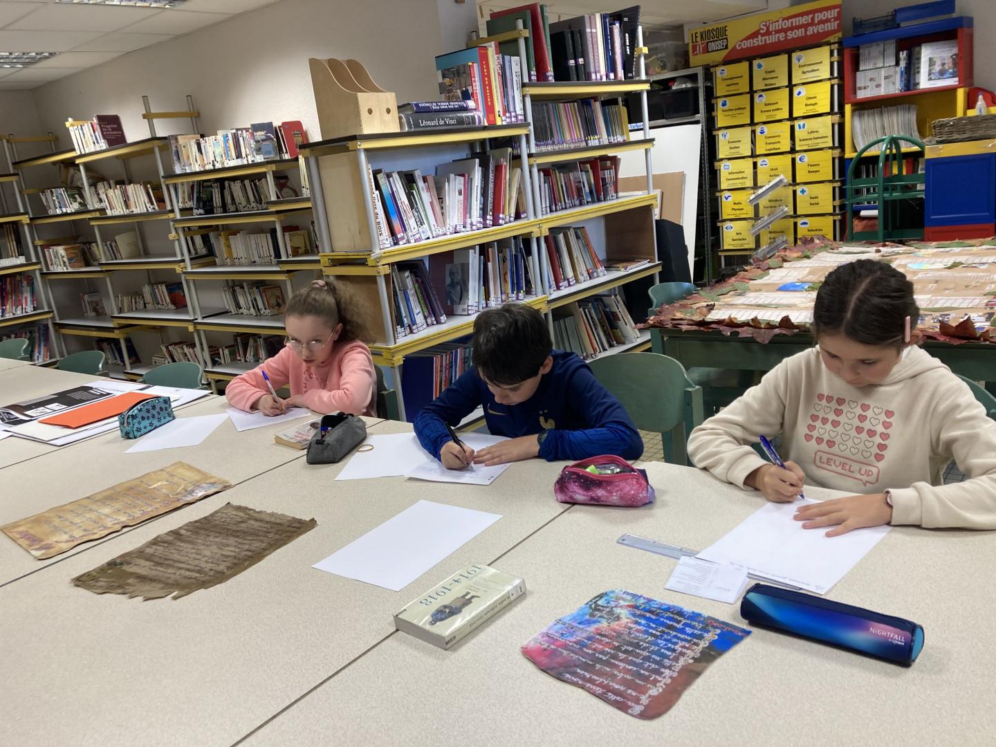 Puis, ils ont émis le souhait d’écrire leur propre lettre en se mettant dans la peau d’un poilu. Après la correction des fautes avec Mireille ils se sont appliqués à poser les mots avec délicatesse sur du papier qu’ils avaient préalablement vieilli. Le résultat est magnifique.