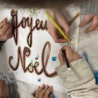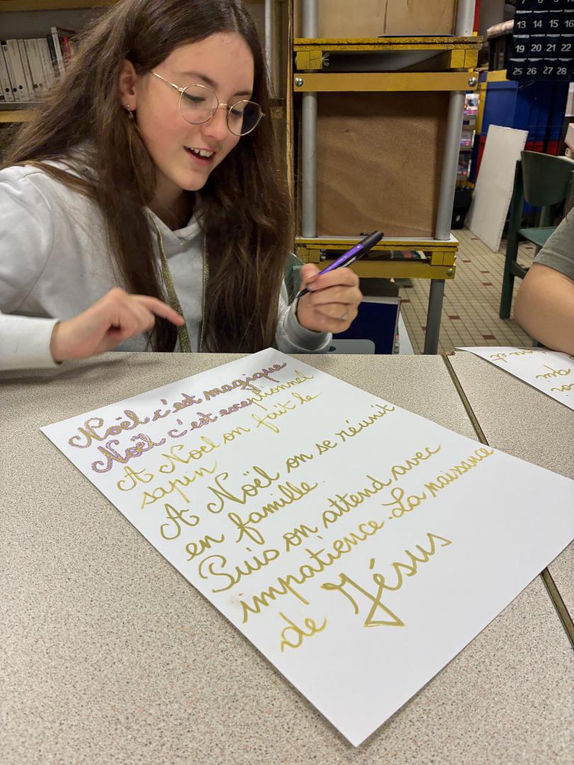 Un magnifique panneau, enluminé avec soin par les élèves pendant les heures de récréation, a ajouté une touche festive et colorée à notre espace. C’était un vrai plaisir de voir tout le monde participer avec enthousiasme !
