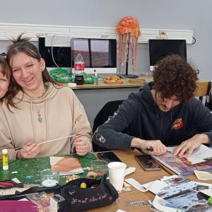 Certains collégiens et lycéens volontaires ont souhaité s’associer à l’événement, profitant de la pause méridienne, des récréations et des heures d’études afin de réaliser un projet artistique dont la restitution s'est déroulée à Langogne du 6 au 10 novembre 2024.