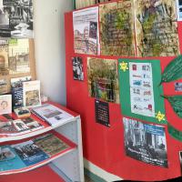 De ce travail d’écriture une création graphique est née mêlant collage, vieillissement de papier, encre de Chine et de couleurs. Ces techniques mettent en évidence des mots forts, des sentiments, des fragments de lettres ainsi que des documents officiels et des photographies. Par l’inventivité des élèves et leur implication associés aux conseils de la documentaliste Mme L’Hermet, le rendu est très émouvant. Pour compléter ce travail et ne pas oublier, des revues, des BD, des ouvrages historiques et littéraires expliquant cette tragique et sombre période sont mis à la disposition des élèves et peuvent être empruntés.