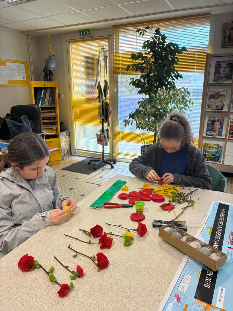 Mardi après midi, Anne et Aurélie, membres de l’association, sont venues récupérer les créations réalisées au CDI.