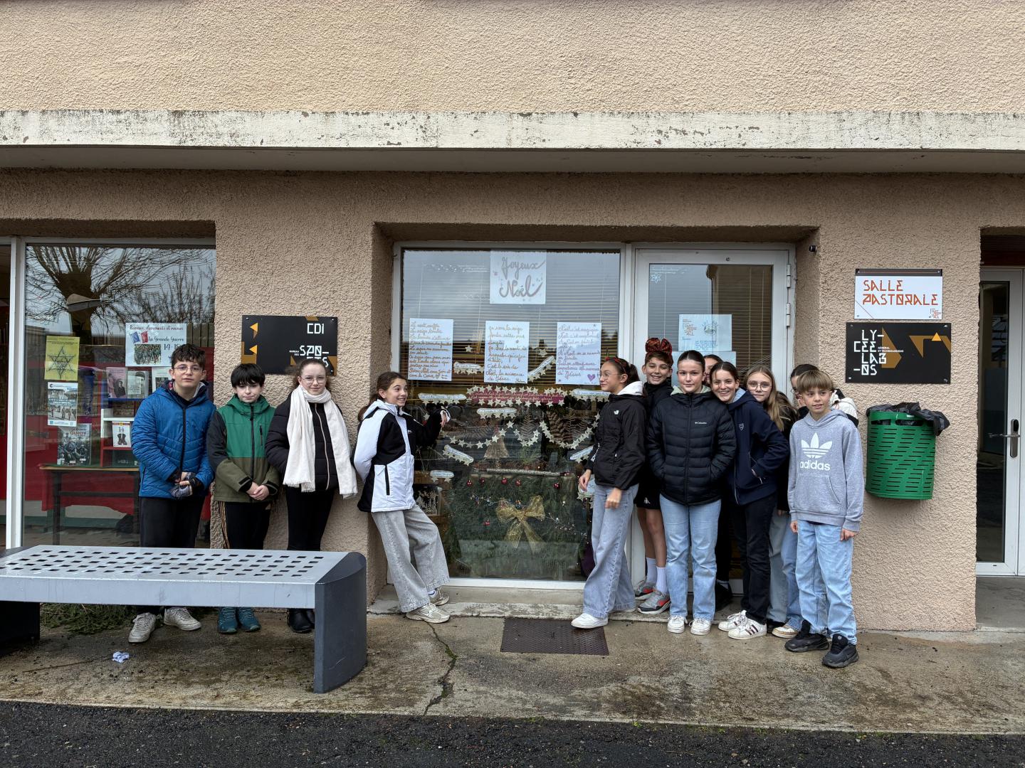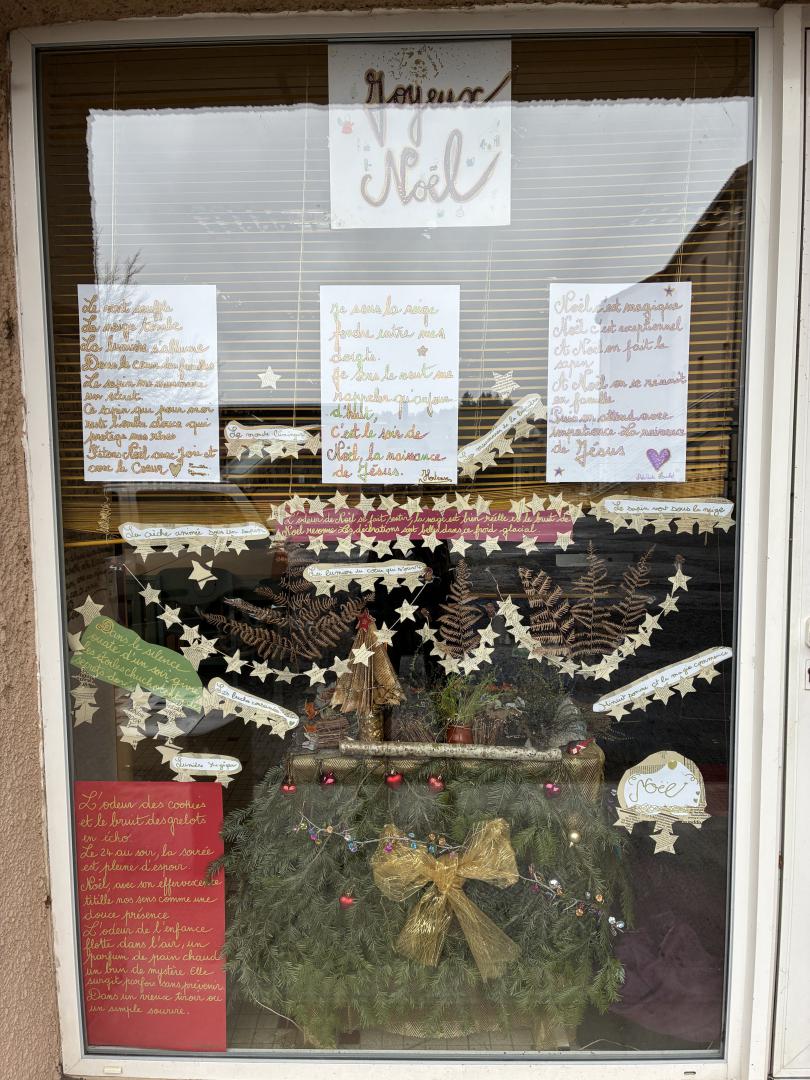 En même temps, le club Lecture Culture a proposé un atelier d’écriture sur le thème de Noël. Des élèves de seconde MVM et MVA qui aiment beaucoup la poésie, ont voulu participer et ont écrit de beaux poèmes affichés sur les vitres du CDI, au-dessus de la crèche, donnant ainsi un air de fête et de créativité à notre décoration de Noël.
