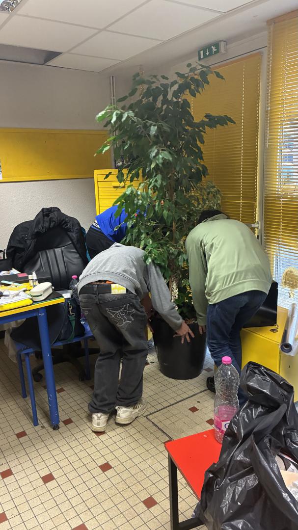 Grâce à leur intervention, nous avons pu réorganiser l’espace de manière efficace. Ils ont nettoyé le sol ainsi que tout le mobilier du bureau de Mireille, en passant également l’aspirateur et en effectuant un grand nettoyage de la plante et du meuble à roulettes.