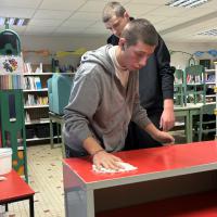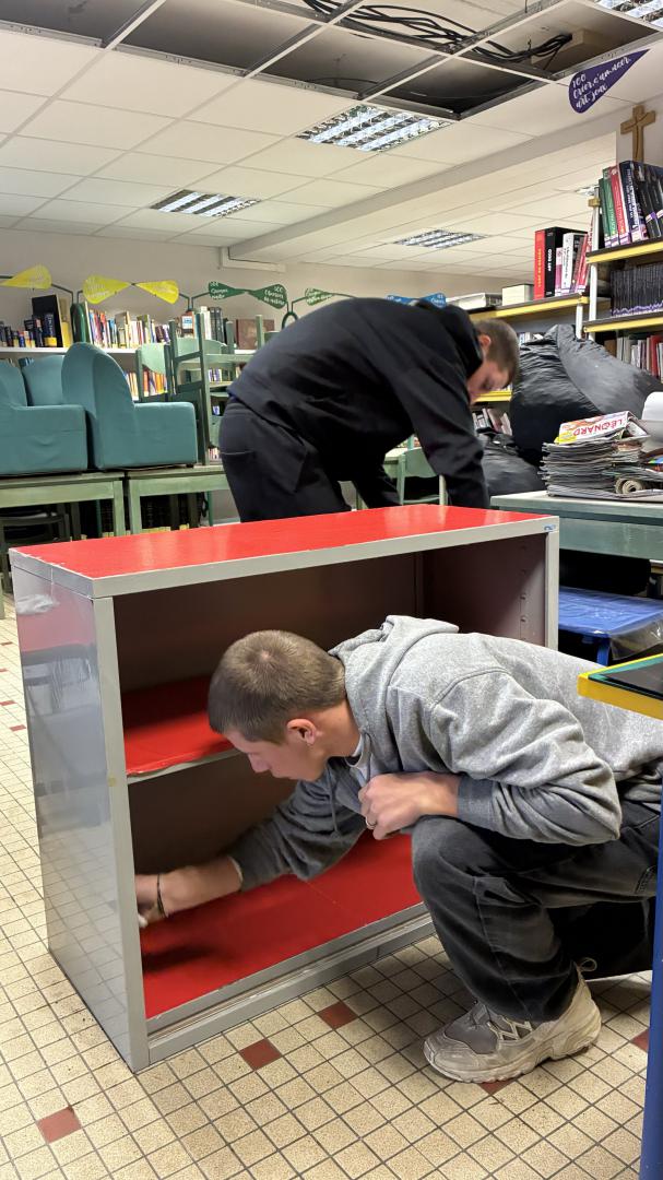 À la suite des sérieux dégâts causés par l’eau, Ilan Salomon et Simon Fleck, élèves de Seconde dans les filières MVM et MVA, ont décidé d’apporter leur aide. Leur offre a été chaleureusement accueillie par Mireille !