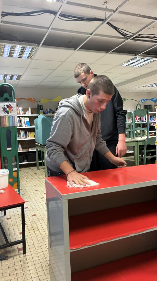 Nouveautés au CDI : Pour créer un environnement propice à la lecture les meubles du CDI ont fait peau neuve ! Des travaux de peinture ont été réalisés par Mireille avec l’aide de Coralie pour la signalétique. Cette initiative vise non seulement à embellir l’espace, mais aussi à inciter les élèves à découvrir le plaisir de lire. Les teintes choisies sont symboliques : le bleu évoque la sérénité et la réflexion, le rouge l’énergie et la passion, tandis que le jaune apporte une note de joie et de dynamisme. Ensemble, ces couleurs forment un cadre accueillant et inspirant, idéal pour plonger dans l’univers des livres.