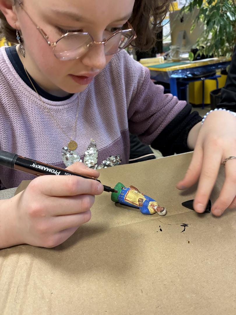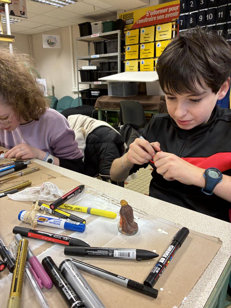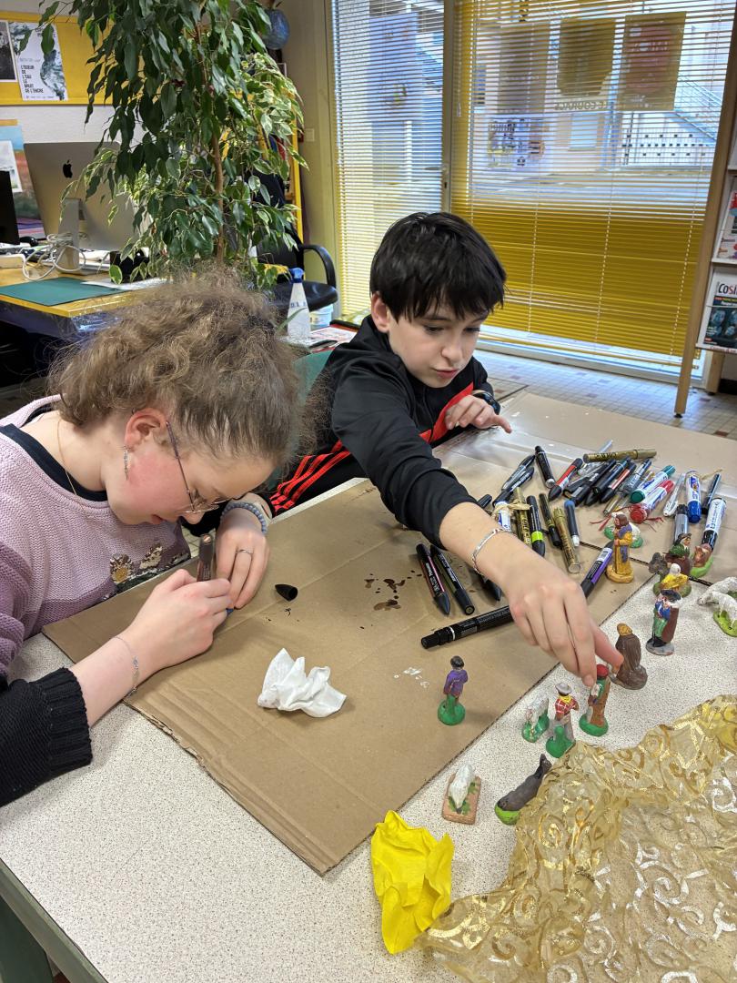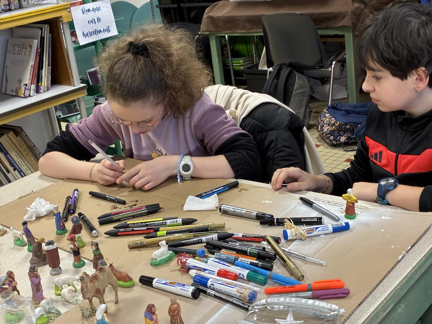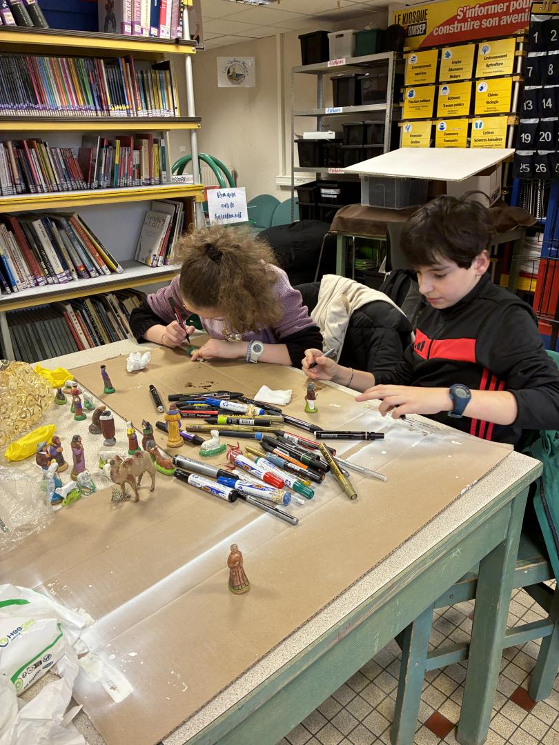 L’installation de la crèche a suivi, apportant une atmosphère douce et réconfortante. Avec un peu de peinture et beaucoup d’amour, Mireille et les élèves ont redonné vie et couleur aux santons de la crèche de Noël. Chacun a contribué en apportant de la mousse et de la paille, créant ainsi un décor chaleureux. Certains collégiens ont même choisi de rester le mercredi après-midi pour avancer dans ce beau projet, témoignant de leur joie et de leur dévouement.