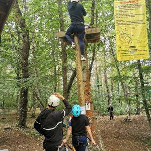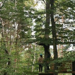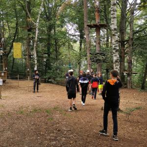 Après ce repos bien mérité et l’impatience de certains, nous voilà repartis pour des activités de pleine nature encadrées par cette équipe de professionnels : accrobranche, paddle, pédalo, canoë, VTT. Certains bien décidés à aller voir la spéciale d’enduro sur la plage d’en face, d’autres plus intéressés à se prélasser sur un pédalo quand les copains se démenaient à faire avancer l’embarcation et d’autres motivés pour découvrir les sentiers du bord du lac en VTT. Quelques-uns ont préféré prendre de la hauteur dans les parcours aménagés dans la forêt de hêtre qui surplombe le lac. Pont de singe, tyrolienne, filets ou encore Slackline à 8 mètres de haut, sont autant d’ateliers qui ont permis à nos jeunes de se surpasser et de s’amuser durant tout l’après-midi.