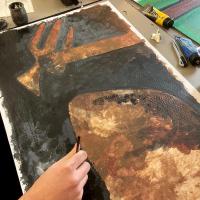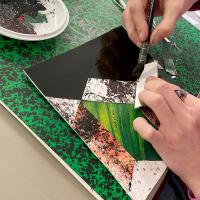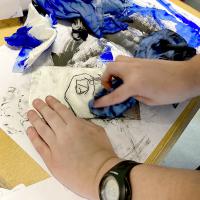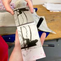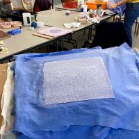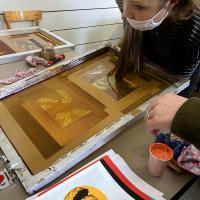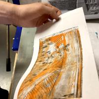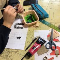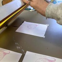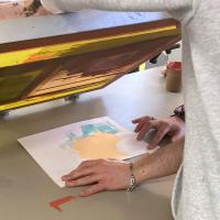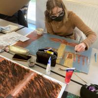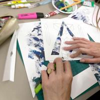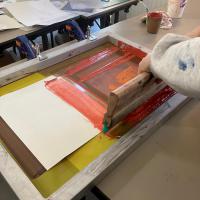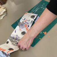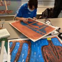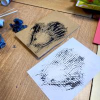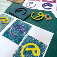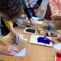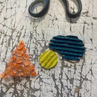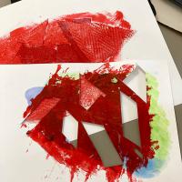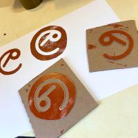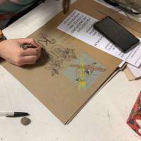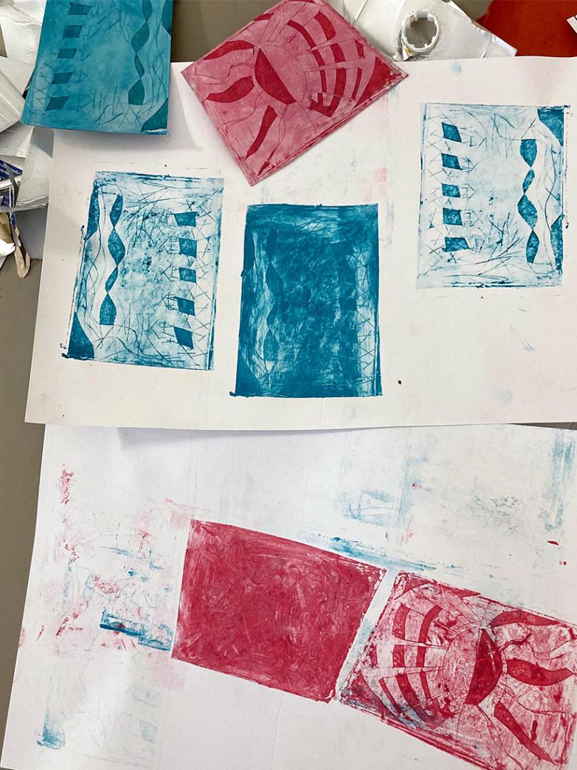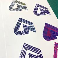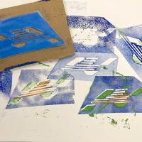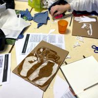 Expérimenter des techniques alternatives pour la gravure en creux avec des emballages de tetra pack et la gravure en relief avec de la colle au pistolet.