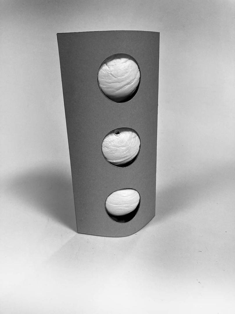 Petit exercice pratique imposé consistant à proposer une série de packaging renfermant 3 boules de papier.