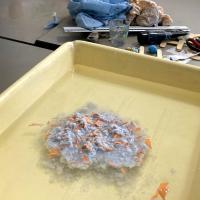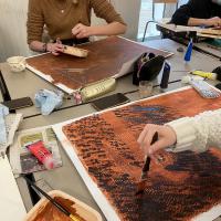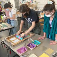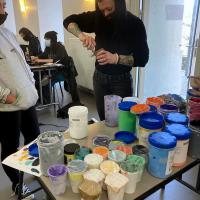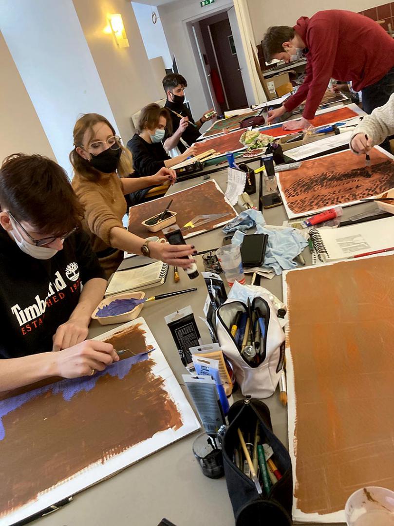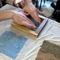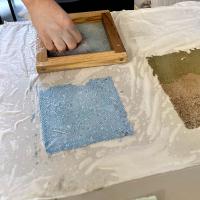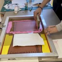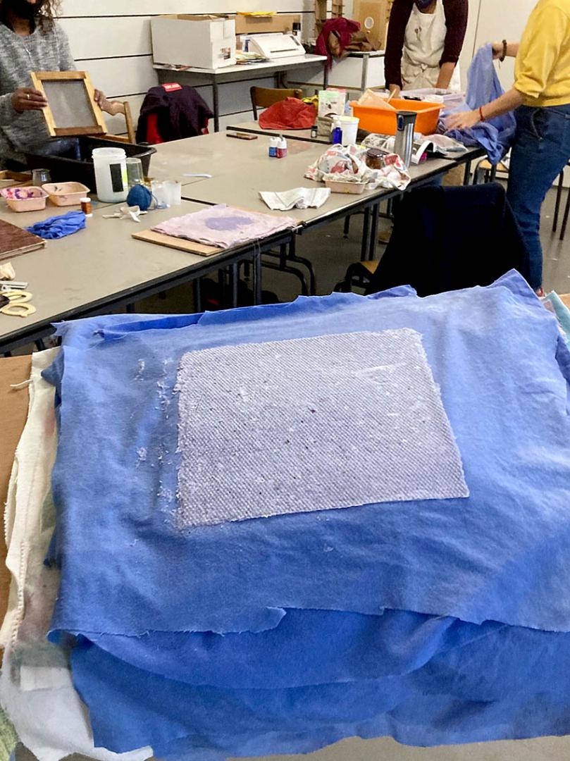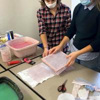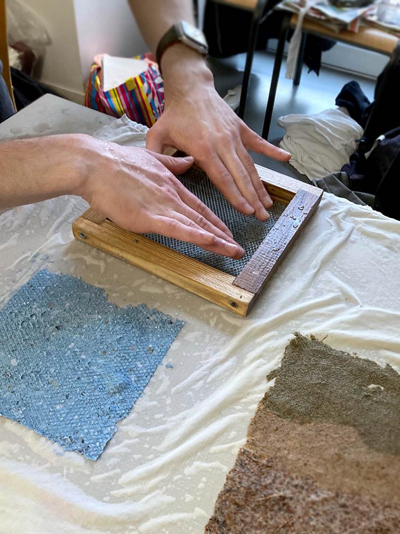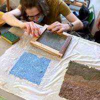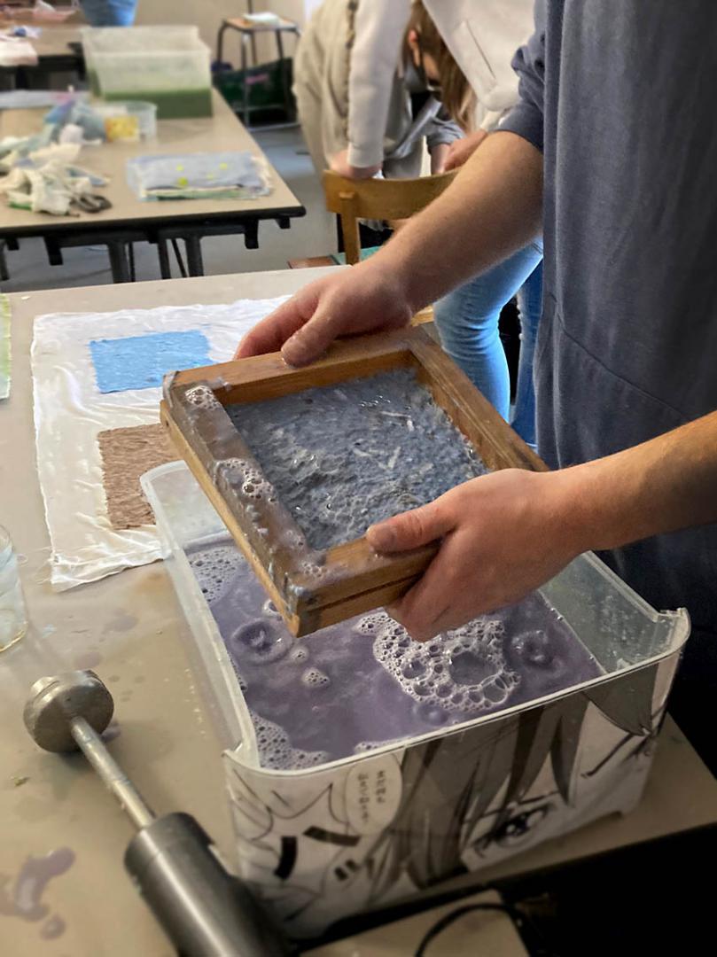 Les étudiants, dans une démarche écologique, sont amenés à maîtriser la fabrication du papier, de la récupération à la mise sous cadre. Les résultats obtenus sont destinés à être ré-expliqués en atelier gravure.