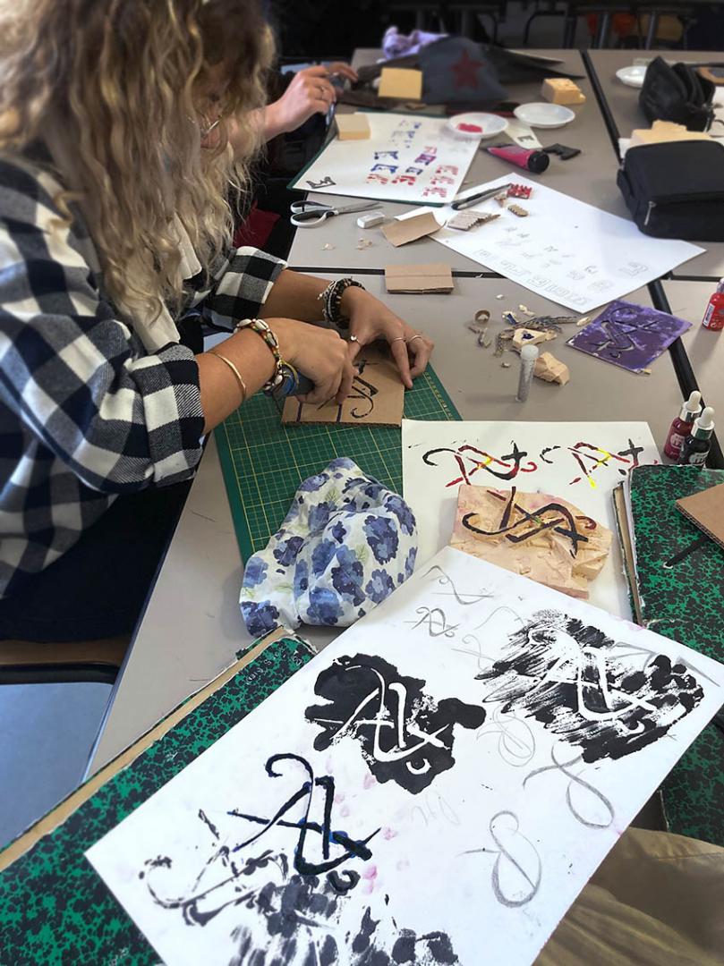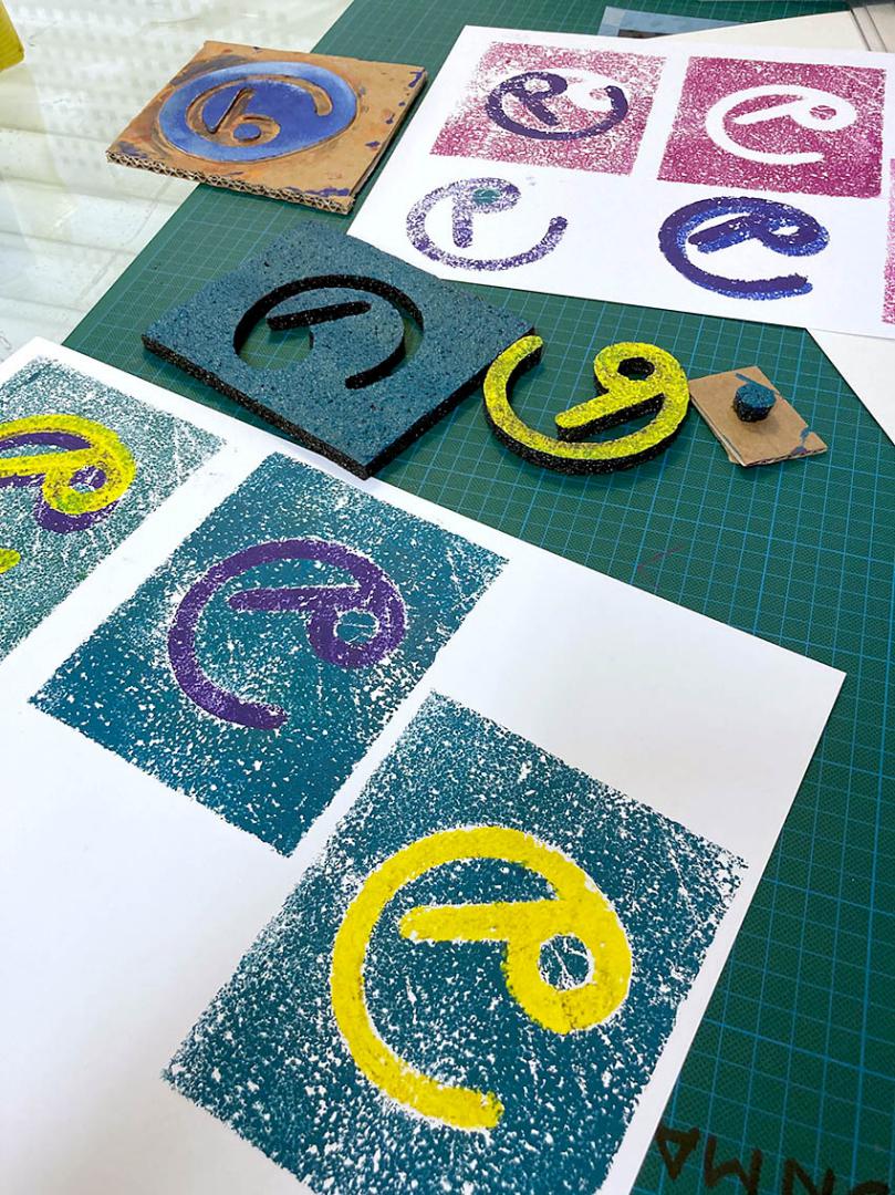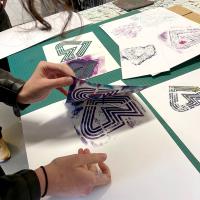 Sur le principe du monogramme les étudiants sont invités à proposer une version de leurs initiales sous formes de tampon. La possibilité est offerte de réaliser leur travail en 3D. L'exercice permet de réfléchir sur les principes de la gravure.
