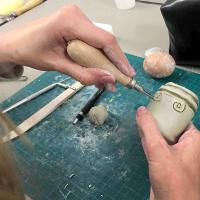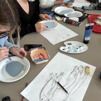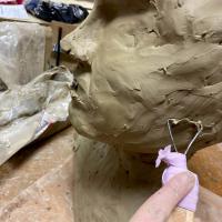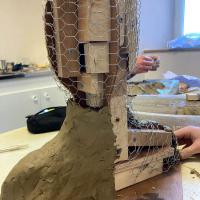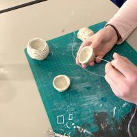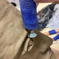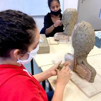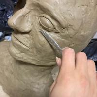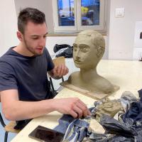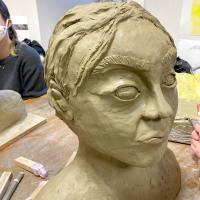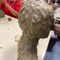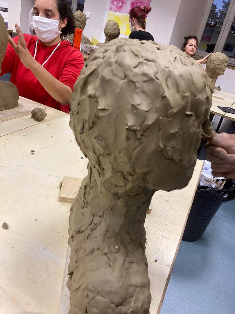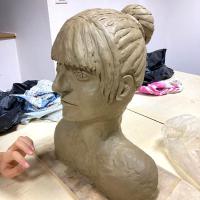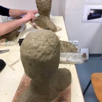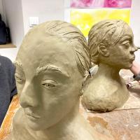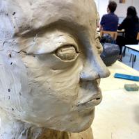 Travail préparatoire pour l'atelier modelage. Portrait en vis-à-vis en céramique. Travail de volume, de rendu et d'élaboration de signes.