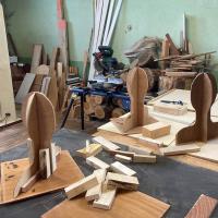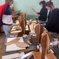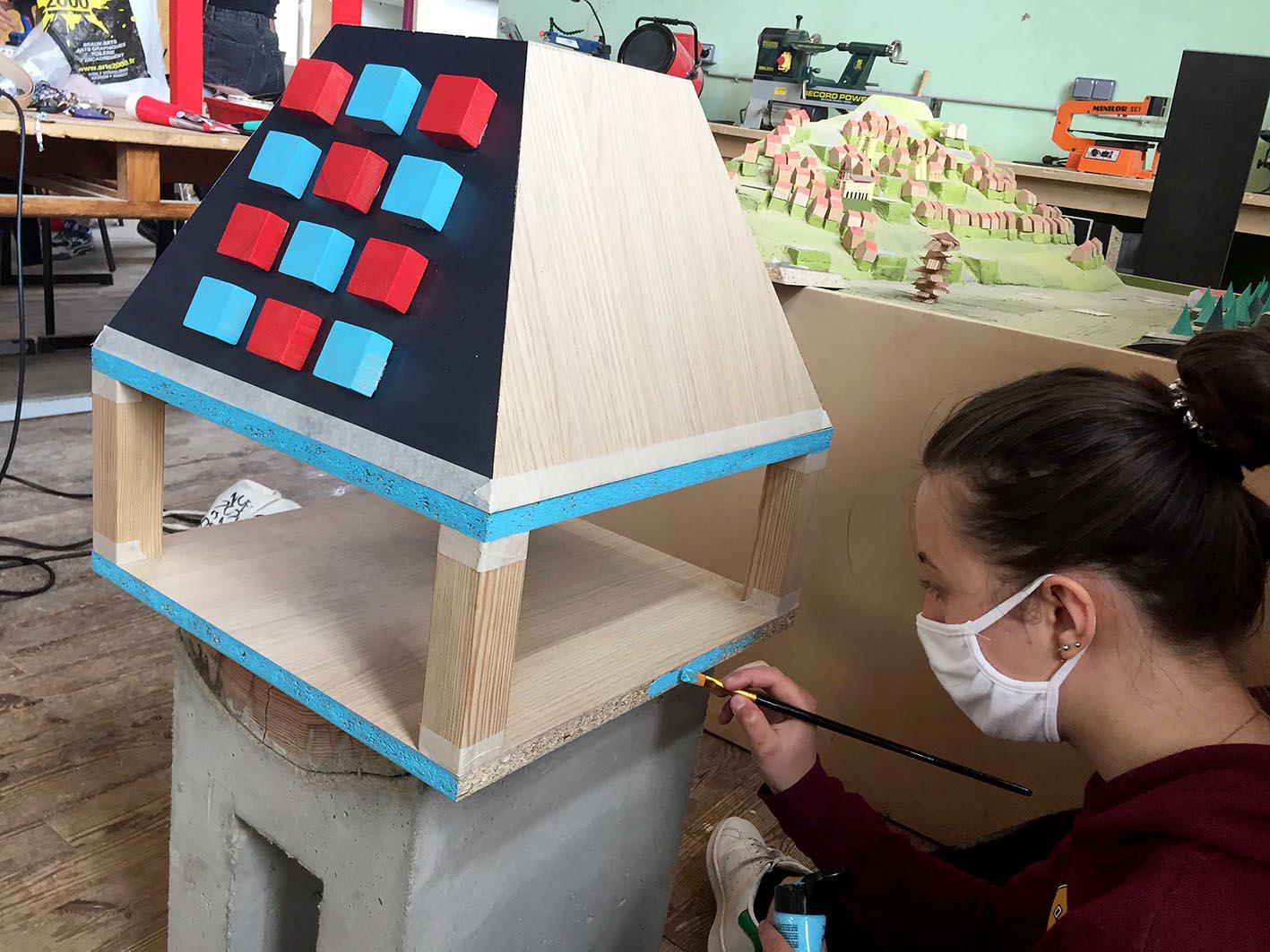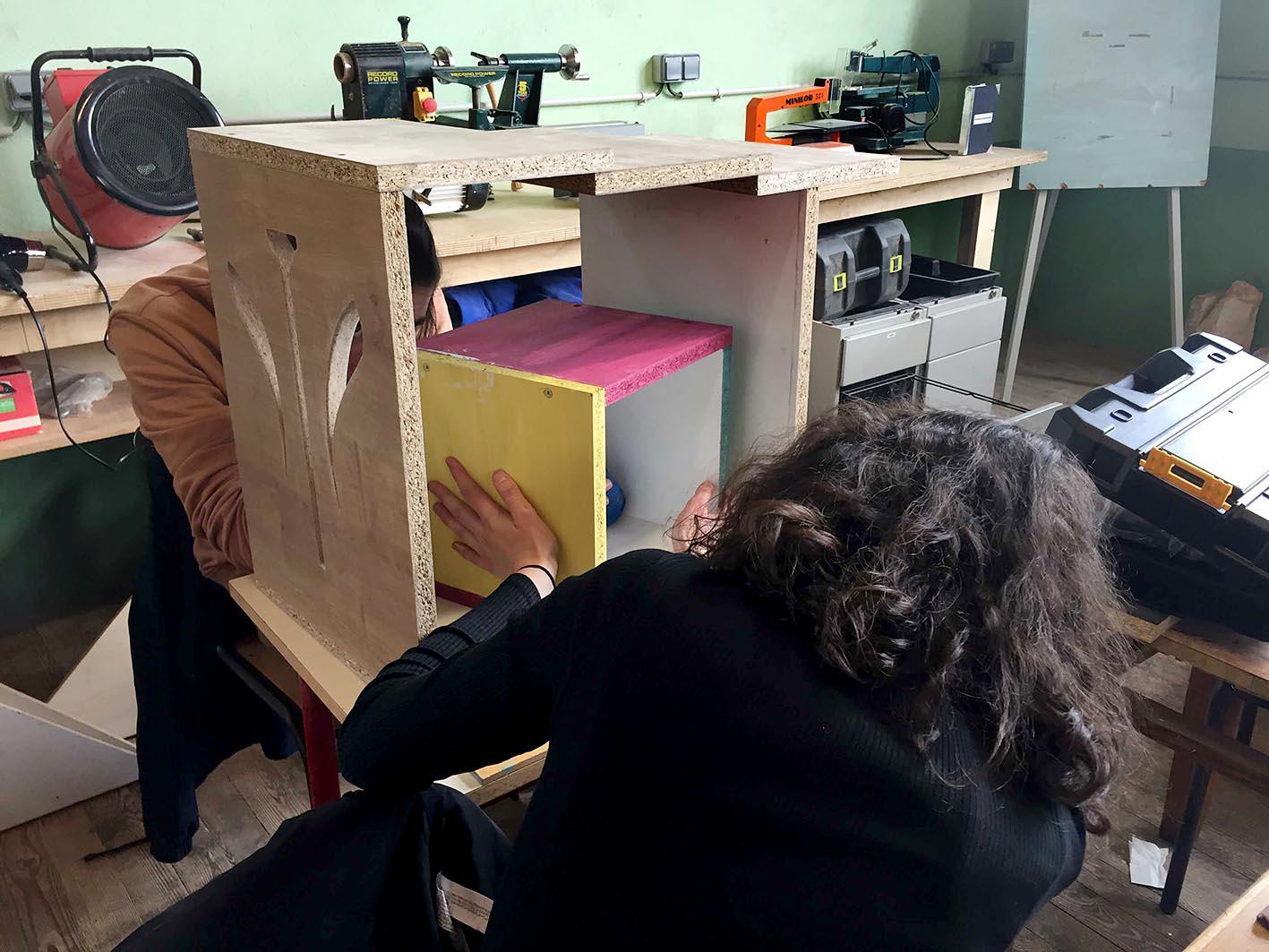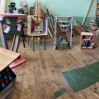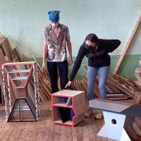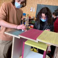 Pour ce workshop de fin d'année les deux designers avaient décidé de proposer une situation d'atelier afin de conforter les apprentissages tout en menant une réflexion autour d'un projet. Tristan Remy & Mattéo Cassonnet invitaient les étudiants à concevoir et réaliser un mobilier reprenant le style Memphis à partir de chutes de mélaminé ou bois en interrogeant le rapport à l'ornementation et aux références historiques.