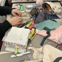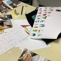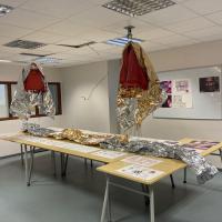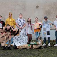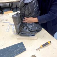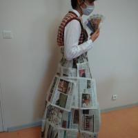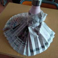 En référence au travail de pliage et aux défilés de mode de l'artiste designer Louise Goldin, les élèves de seconde option Arts plastiques devaient réaliser deux croquis sur une planche puis mettre en évidence en 2D les plis et volume de leur projet. Par la suite en groupe, les élèves ont essayé de travailler à l'échelle de leur choix, une production en 3D de ce concept éphémère, parfois grandeur nature...