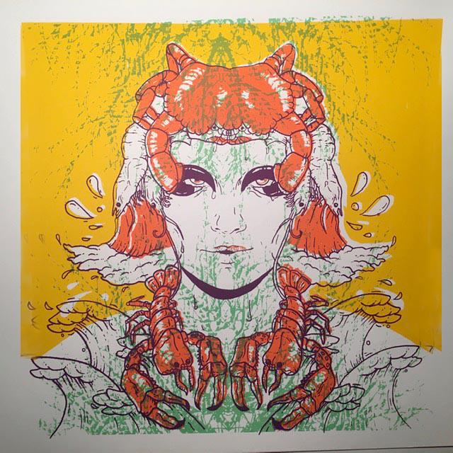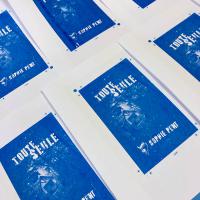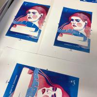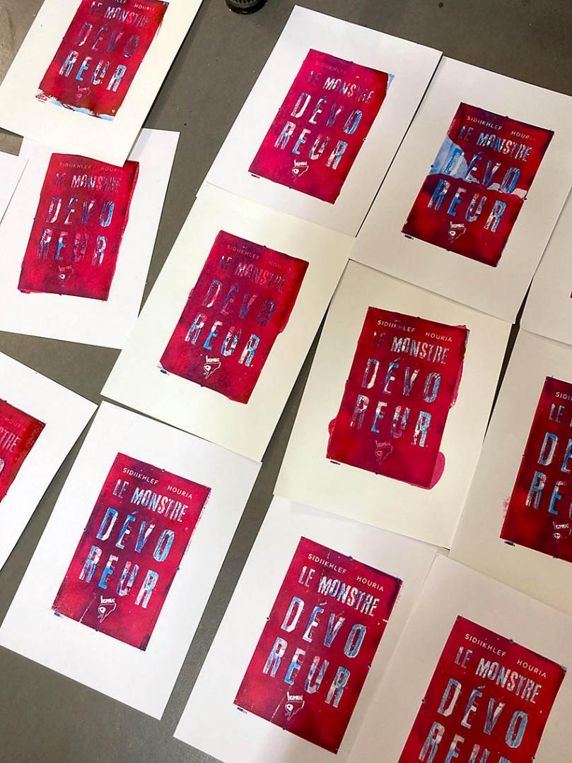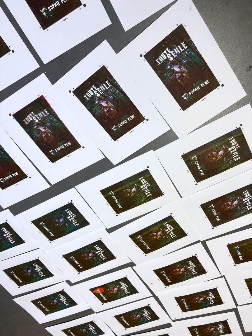 Production d'une couverture pour une collection de roman noir. Travail en sérigraphie et en quadrichromie en utilisant des jeux de trame.