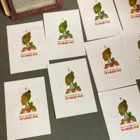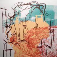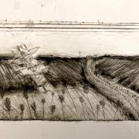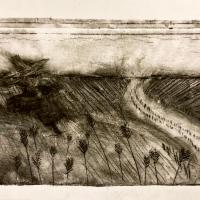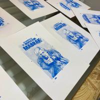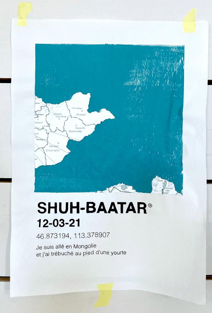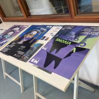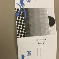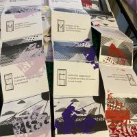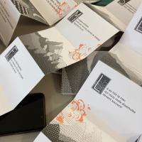 Réalisation d'un dépliant à partir de paysages exécutés à l'aide de trames et en juxtaposition d'haîkus écrits par les étudiants. Dans un second temps le visuel était réinvesti à partir d'empreintes ou de parties de films sérigraphie prélevées sur un workshop et permettant la surimpression de signes au hasard des combinaisons possibles.