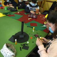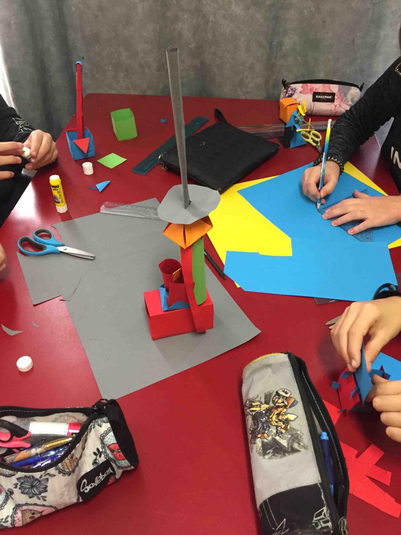 Les élèves doivent fabriquer la plus haute sculpture en papier ! Attention à l'équilibre…