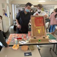 Découpes complexes, cohabitation de matériaux, assemblage, prise en compte des tranches, intégration de la couleur et du motif permettaient de répondre aux diverses problématiques de réalisation. Au final chaque binôme faisait part de son expérience, ses objectifs à travers l'objet, les problèmes rencontrés et les motifs de satisfaction.