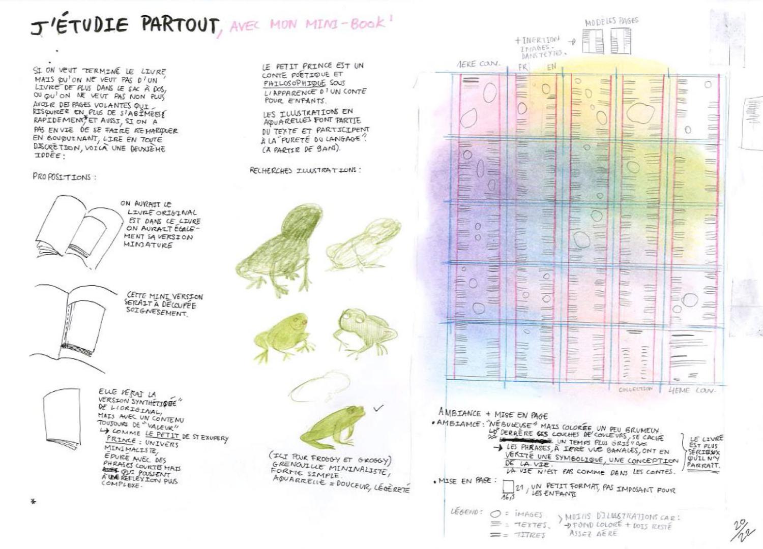 Etudes pour les couvertures avec rabats. Elaborations de propositions à partir de l'univers graphiques de chaque artiste.