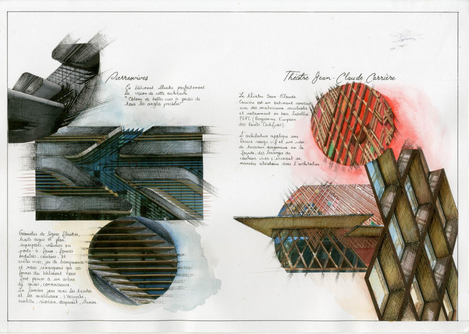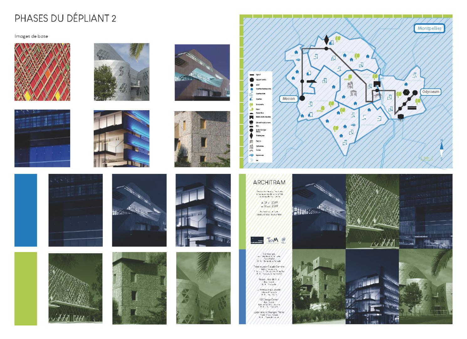 Concevoir un dépliant A3 permettant de découvrir les architectures typiques de la ville de Montpellier le long de la ligne 1 du tramway.