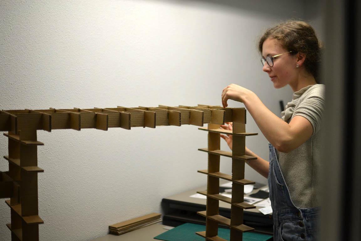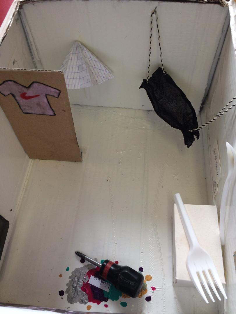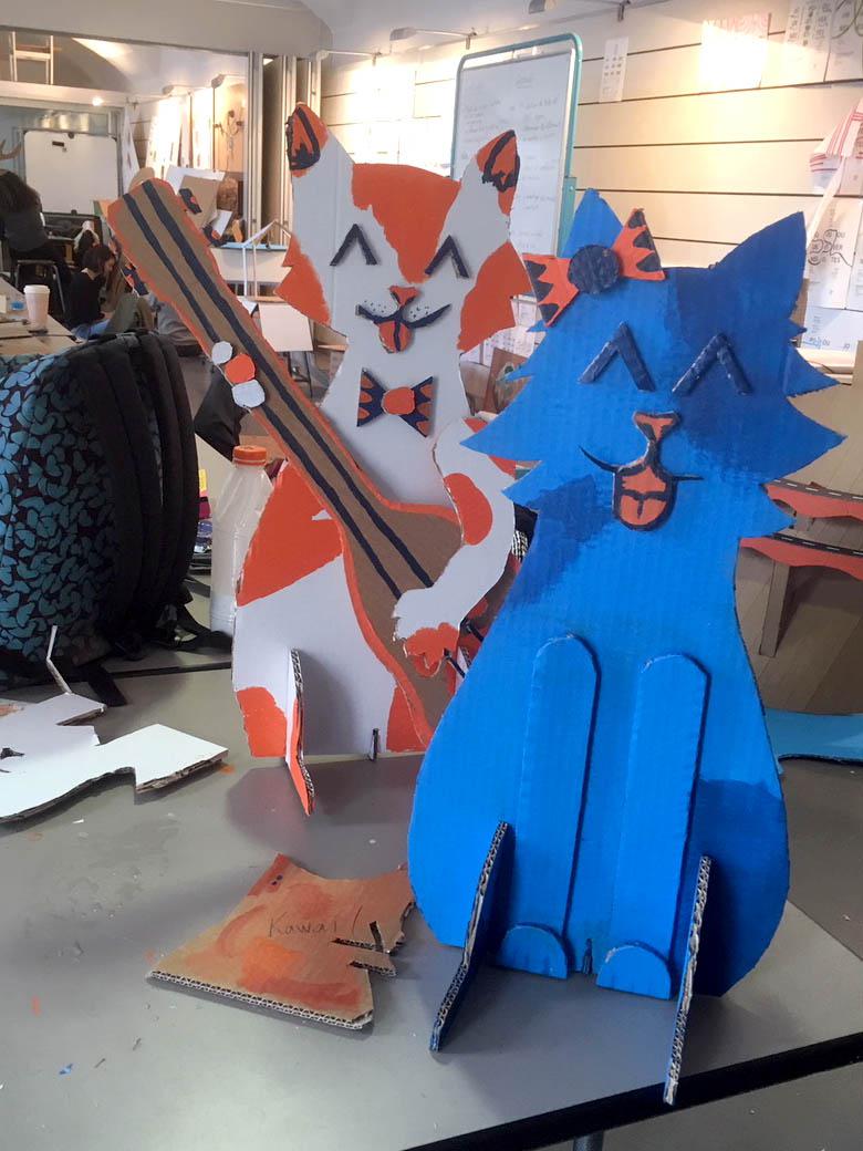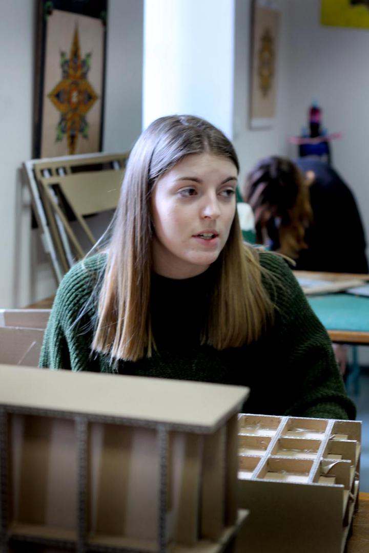 À partir d'une série de tiroirs récupérés, les élèves sont amenés à élaborer un meuble en carton. Résistance, assemblage, renforcement, finission, les différentes phases techniques permettant la mise en forme du mobilier permettent de visualiser au final un volume qui se construit autour d'un objet existant.