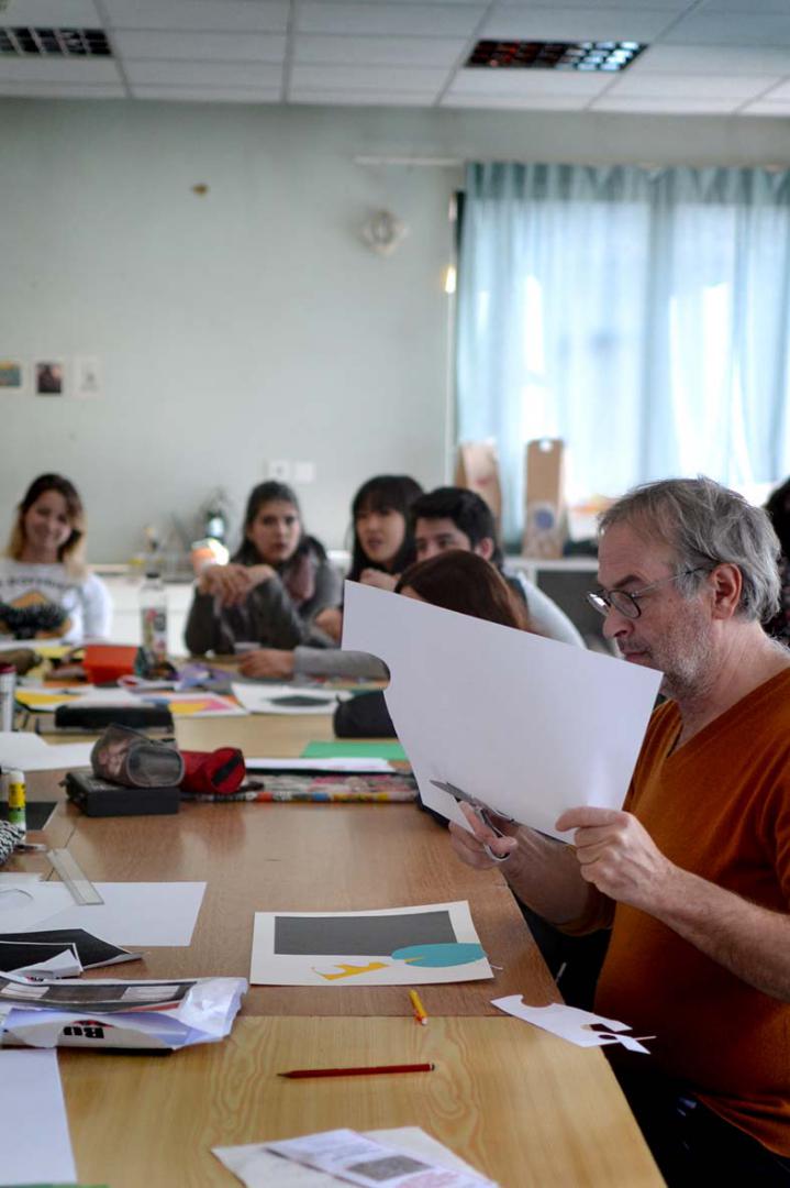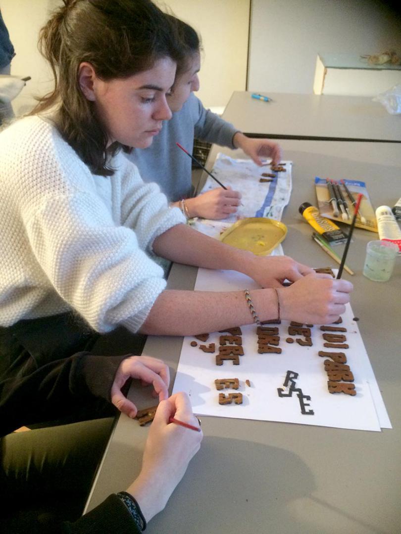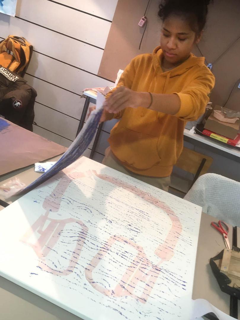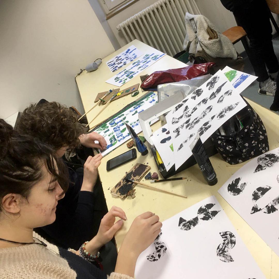 Élaborer un motif, préparer sa plaque et imprimer, les élèves découvrent toutes les phases qui les amènent à produire des impressions sur papiers. Leurs salles de cours sont transformés en un atelier vivant et interactif où se déploient les différents postes de production.