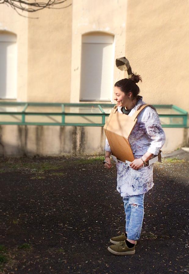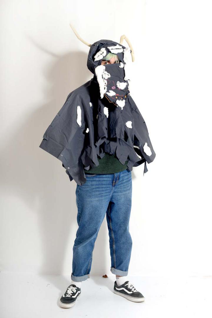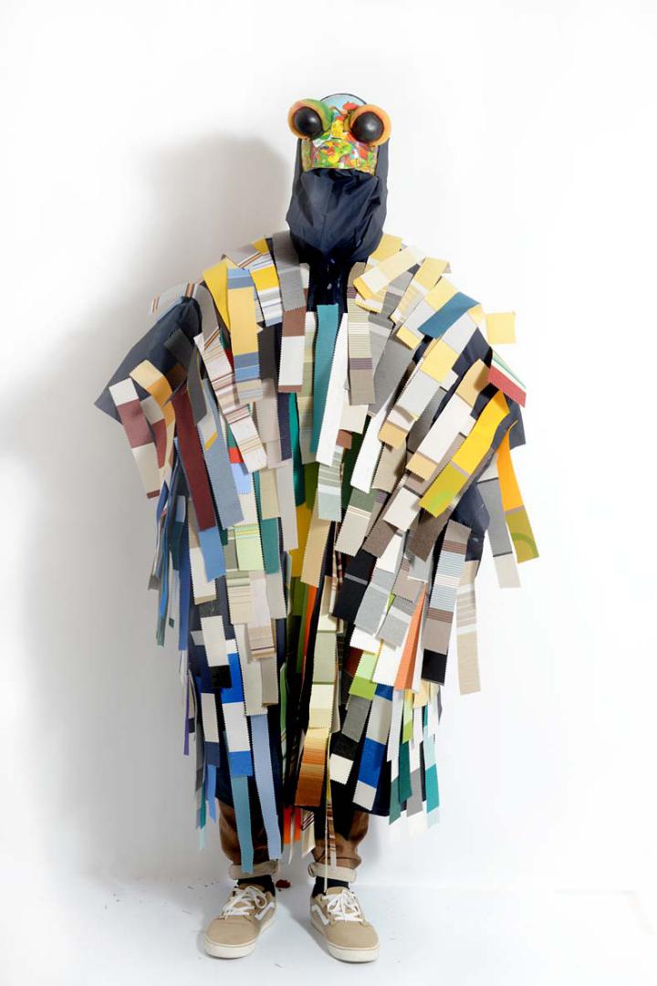 Transformation d’un poncho de pluie purement fonctionnel en une parure spectaculaire (spectacle ou défilé) dans lequel votre part animal doit ressortir. Le corps devient sculpture vivante.