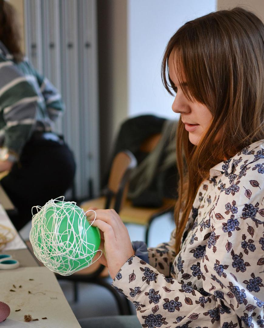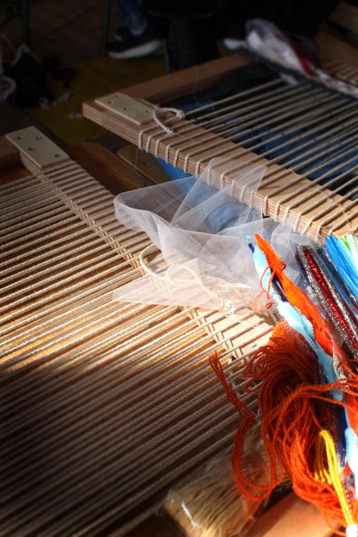 Les élèves de 1ères STD2A sensibilisés aux techniques du tissage en présence de Jacques Bernard, artisan lissier. Présentation des différentes techniques, construction des cadres et expérimentation à travers l'utilisation de divers matériaux issus de la récupération.