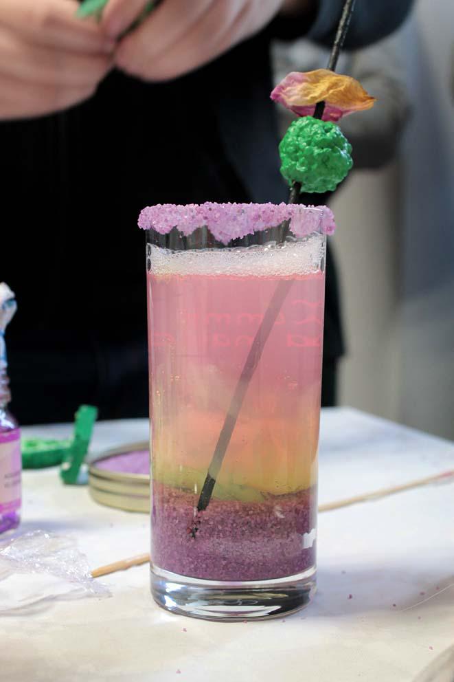 Dans le cadre de l'option arts plastiques les secondes élaborent des gâteaux dont l'aspect prime autant à l'extérieur qu'à l'intérieur à partir de matériaux non consommables. Idem pour les cocktails réalisés par les premières STD2A qui ne sont que justes à voir.