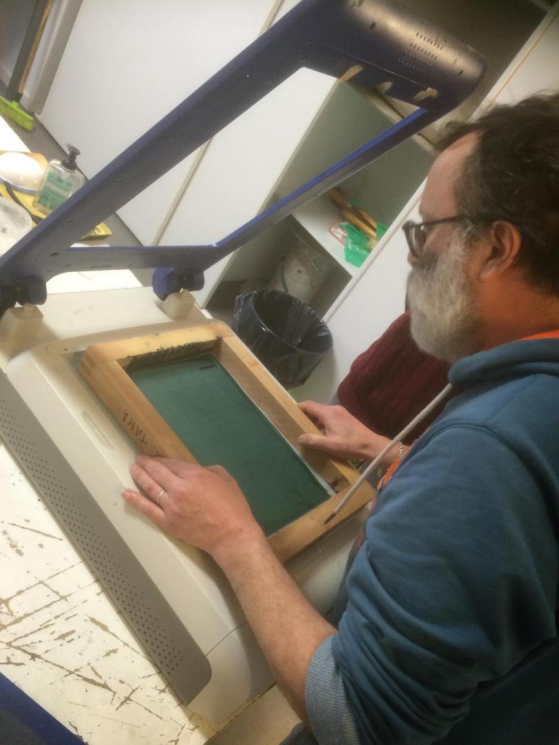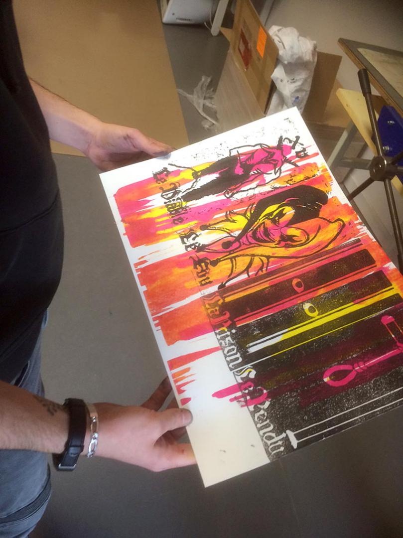 Les DNMADe durant 4 jours (du 22 au 24 janvier 2020) travaillent à l'élaboration et au tirage en sérigraphie de l'affiche du 1er salon de la micro édition au lycée St Pierre-St Paul. Bonne humeur, motivation et la récompense du travail réalisé ainsi que la rencontre avec un professionnel accessible.
