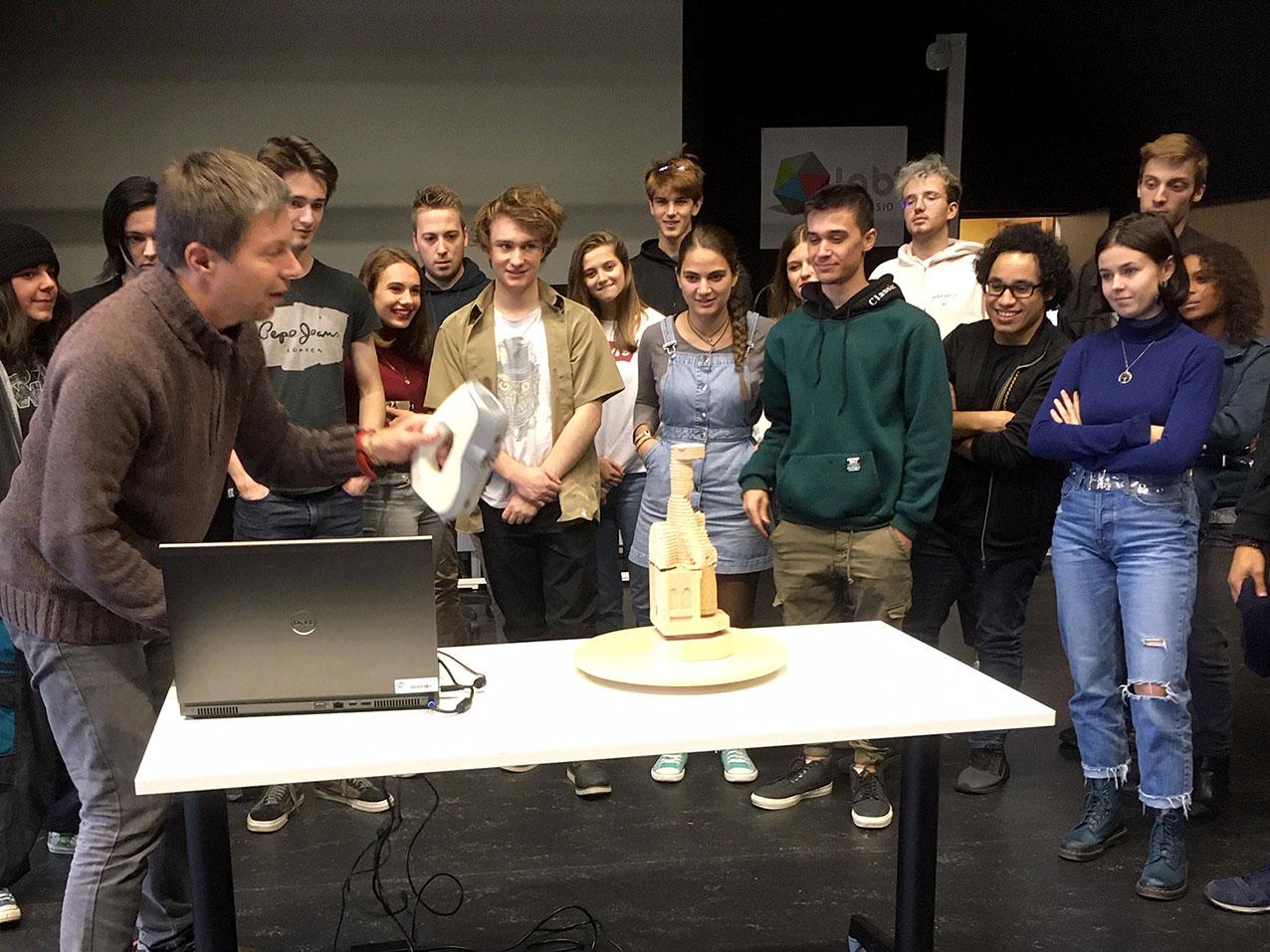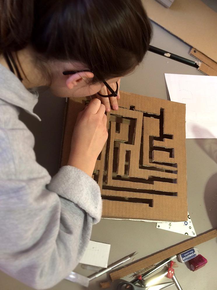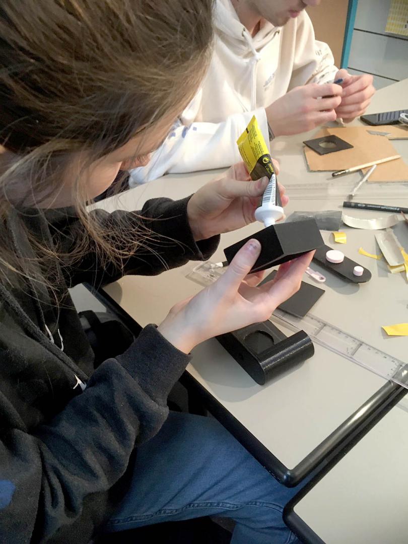 Les élèves évoluent en groupe et proposent une maquette de leur projet au final.