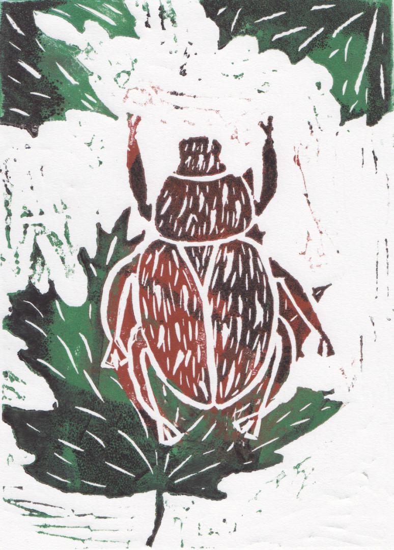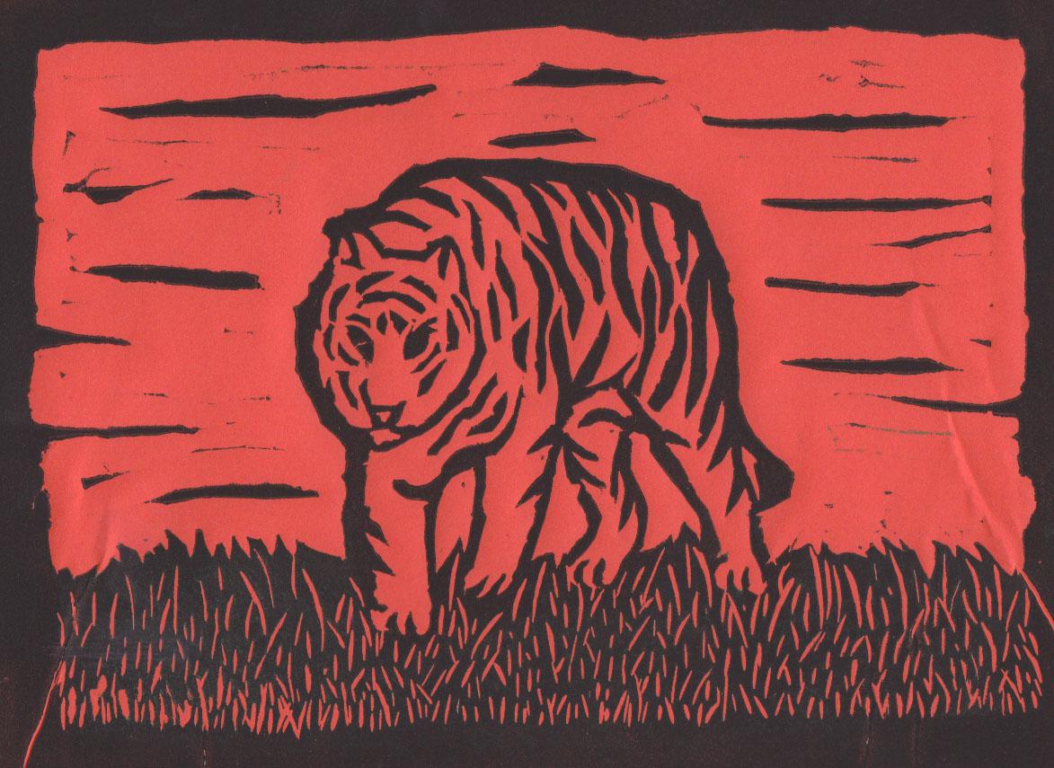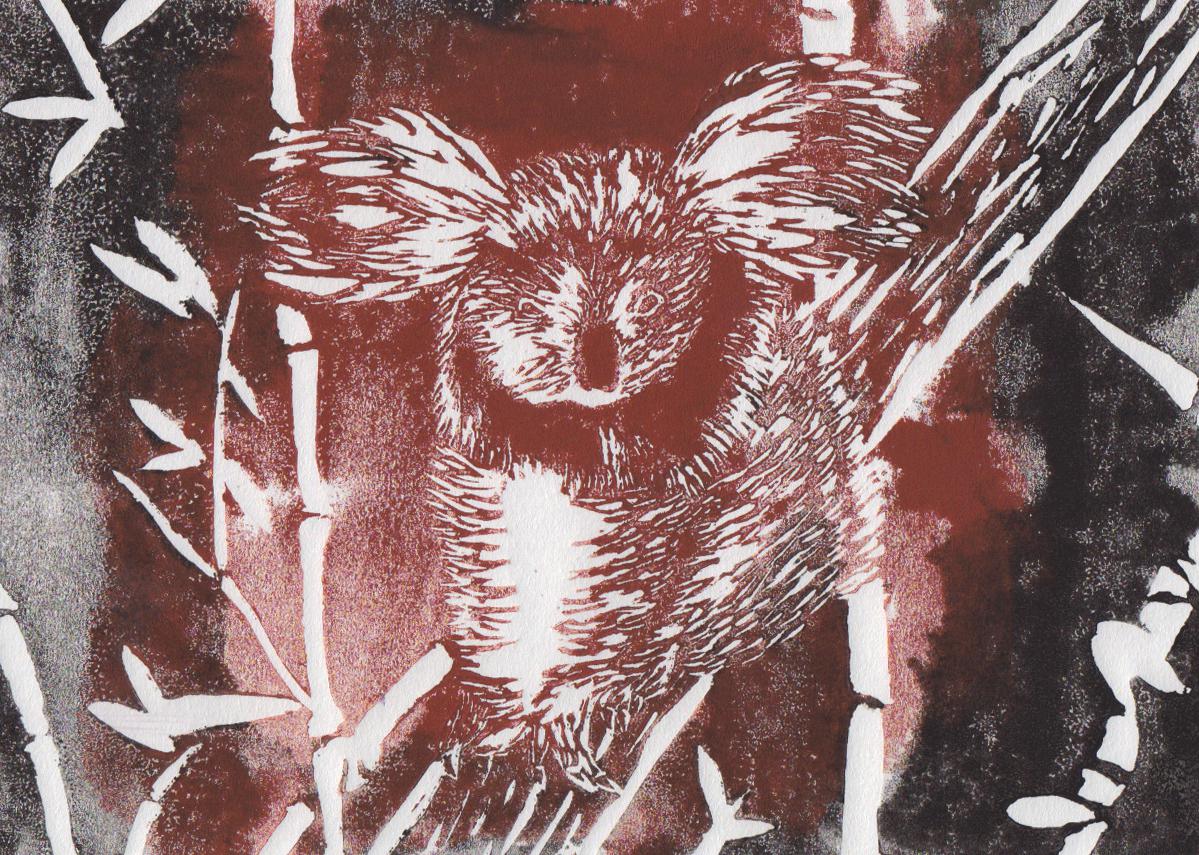 Elaborer un bestiaire. Linogravure et tirage sur divers papiers.